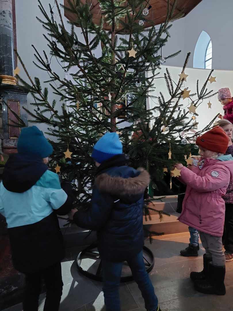 Im Anschluss an die weihnachtlichen Segensworte von Pfarrer Hubert, gestalteten die Kinder aktiv unsere Kirche mit und dekorierten den Christbaum neben der Krippe.