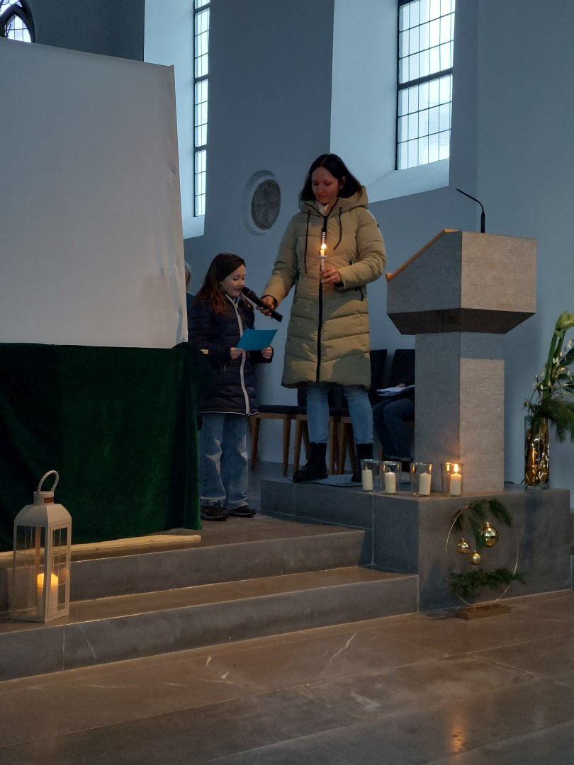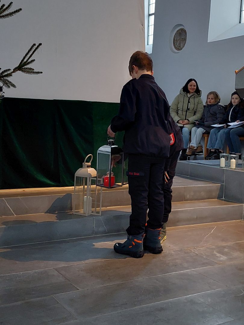 Nachdem Beat und Konstantin im Namen der Feuerwehrjugend Riefensberg die Laterne mit dem Licht aus Bethlehem entzündet hatten, brachten Eileen und Katharina unsere Wünsche vor Gott und beleuchteten so Bitte um Bitte die Pfarrkirche mit Kerzenschein.