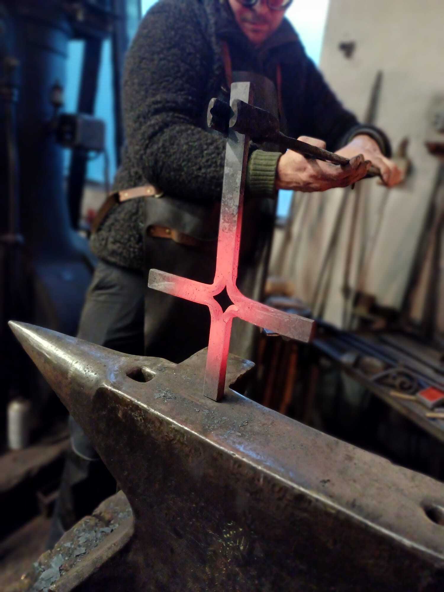 Von der Idee - als Pfarrteam gemeinsam ein Kreuz zu schmieden - begeistert, schlägt der Schmied vor, ein sogenanntes "Friedrichskreuz" zu schmieden.